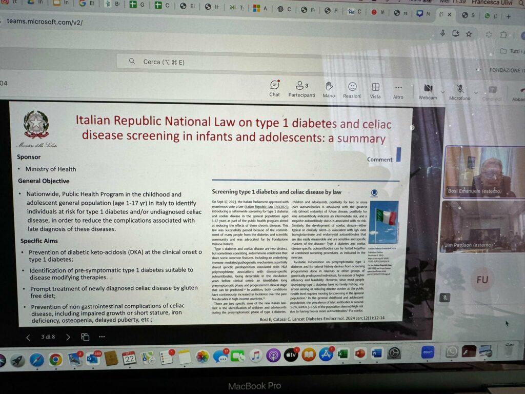 Siamo lieti di condividere un importante riconoscimento internazionale per l’Italia e per il lavoro svolto da Fondazione Italiana Diabete (FID). L’Italia – grazie alla Legge 130/23, che ha introdotto lo screening pediatrico per il diabete di tipo 1 e per la celiachia – è entrata nel dibattito internazionale sulla prevenzione del diabete.