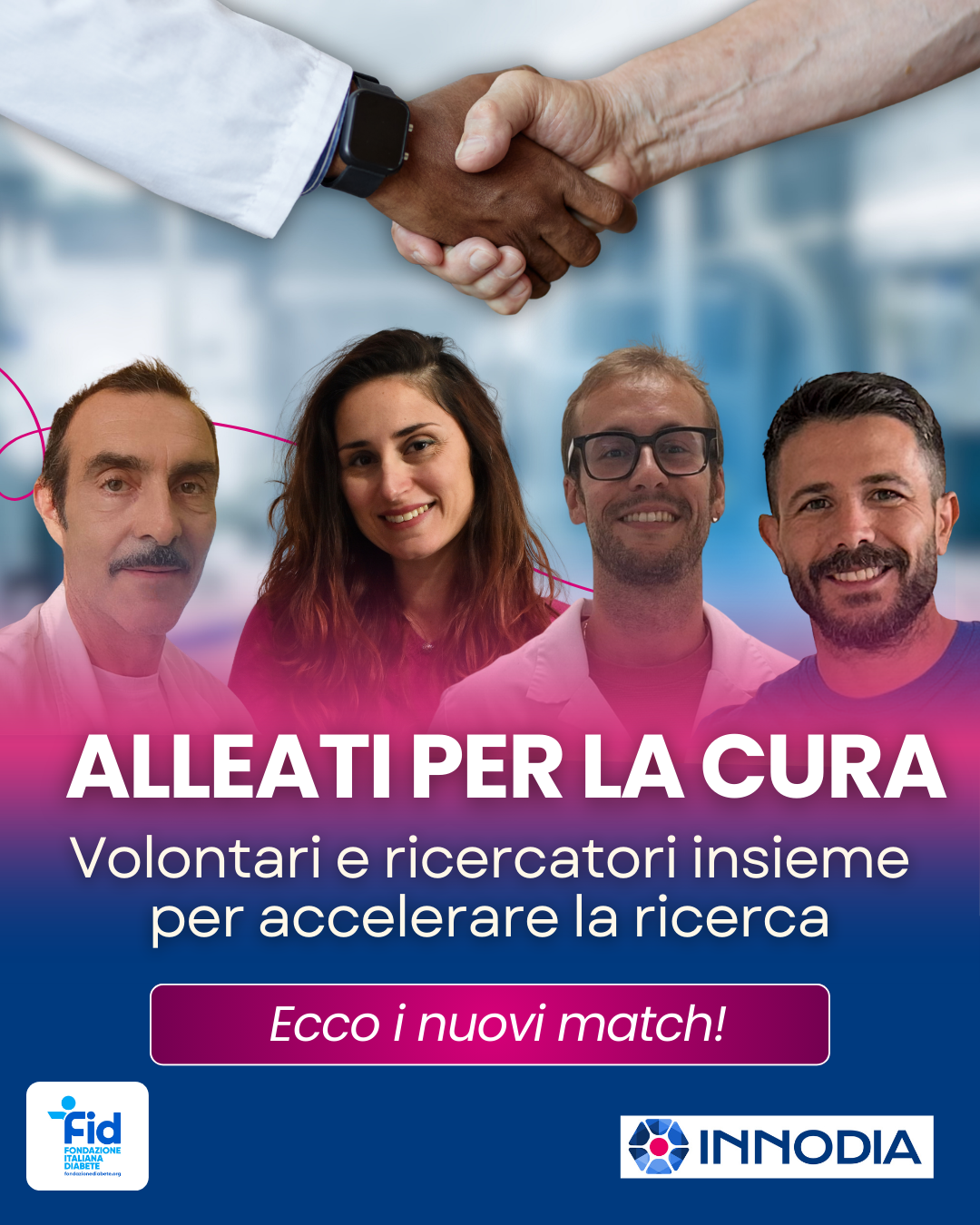 FID e INNODIA condividono il principio che le persone con diabete siano centrali in ogni processo scientifico (o medico) che le riguardi e sia necessaria la loro partecipazione attiva a questi processi. Per questo, come in tutti i progetti finanziati da FID, ci sarà un “Alleato per la cura” ad affiancare il ricercatore che vincerà il Grant. Gli “Alleati per la cura” sono i volontari di FID, certificati come INPACT Associate, e quindi formati da INNODIA, che aiutano i ricercatori a integrare il punto di vista dei pazienti nella comunicazione e nella divulgazione dei risultati.